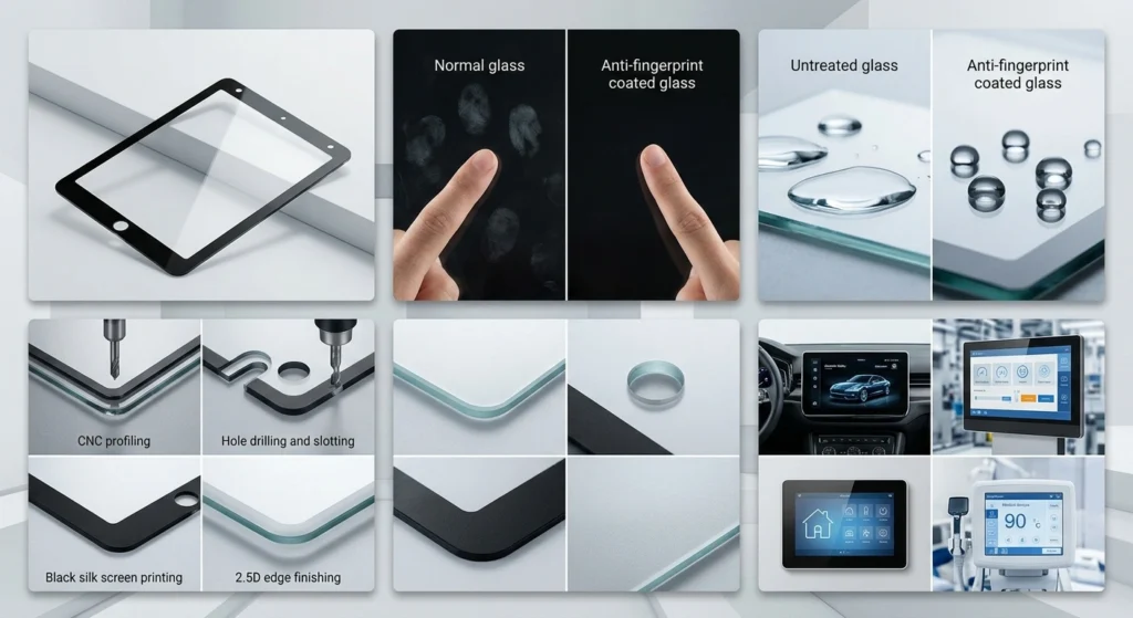 AF coated glass is designed for touch displays and cover glass applications that need fewer fingerprints, smoother touch, and easier cleaning.
